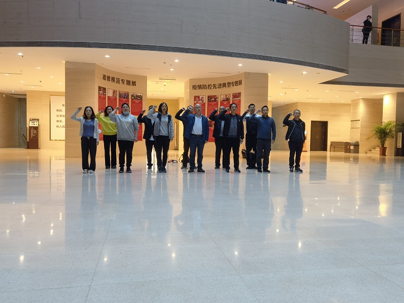 在紀(jì)念館一樓展廳,面對鮮艷的黨旗,黨支部書記沈進(jìn)波同志帶領(lǐng)全體黨員高舉右手重溫入黨誓詞。全體黨員莊嚴(yán)宣誓,表達(dá)了對黨的無限忠誠和崇高敬意。隨后大家依次參觀了戰(zhàn)前形勢、戰(zhàn)役準(zhǔn)備、突破江防、戰(zhàn)役勝利、人民支前、英烈業(yè)績等展廳,重溫了那段波瀾壯闊的革命歷程,真切感受到了黨的偉大感召力、戰(zhàn)斗力,特別是軍民團(tuán)結(jié)一心戰(zhàn)勝一切艱難險阻的魚水之情令人為之動容。