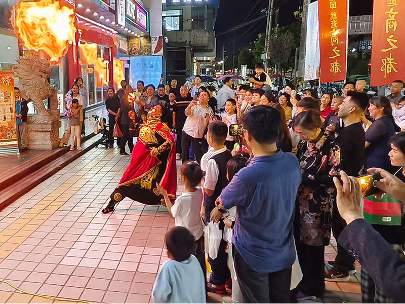 活動(dòng)現(xiàn)場(chǎng)氣氛火熱,各類表演輪番登場(chǎng):皮影戲演繹得活靈活現(xiàn)、川劇變臉神秘莫測(cè)引人稱奇,噴火表演點(diǎn)燃全場(chǎng)熱情、小丑互動(dòng)則以活潑姿態(tài)拉近距離。精彩演出吸引眾多市民駐足,不少家長(zhǎng)帶著孩子圍站觀看,孩子們看得目不轉(zhuǎn)睛,家長(zhǎng)們紛紛掏出手機(jī)記錄,還主動(dòng)上前與表演者合影?!昂苷鸷?!很神秘!不愧為國(guó)粹藝術(shù)?!币晃慌阃⒆佑^看的家長(zhǎng)如是說(shuō)道。