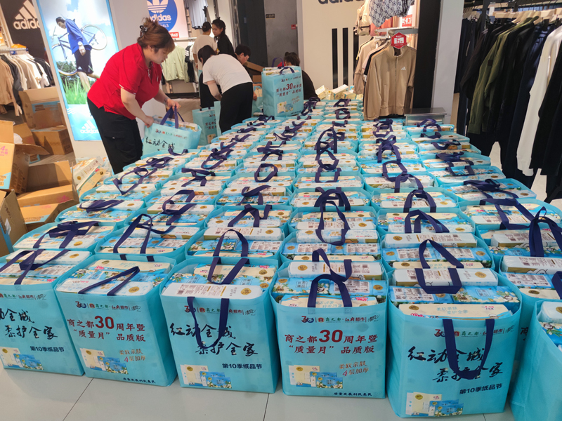 活動(dòng)前期,員工們便積極行動(dòng)起來(lái),通過(guò)微信、電話提前對(duì)潛在客戶進(jìn)行摸底邀約?;顒?dòng)期間,他們秉承“一件起送”“24小時(shí)在線接單”服務(wù)理念,全力捕捉每一個(gè)銷售機(jī)會(huì)。面對(duì)一大包紙品,員工們化身“娘子軍”,從卸貨到裝車,從下車到碼放,再到分類包裝,大家動(dòng)作嫻熟流暢,一氣呵成,以最快的速度完成產(chǎn)品打包,確保產(chǎn)品第一時(shí)間送達(dá)顧客手中?!拔疫€要10套,下午家人開(kāi)車?yán)洝薄拔乙?套,下班預(yù)約了送貨”賣場(chǎng)群里的這股搶購(gòu)熱潮將銷售活動(dòng)推向了高潮,員工們士氣高漲,你追我趕,向著銷售目標(biāo)全力沖刺。家人參與送貨、協(xié)助銷售也成為常態(tài),真正將“全員營(yíng)銷” 理念落地生根,讓商之都“紅”遍布皋城大地的每一個(gè)角落。