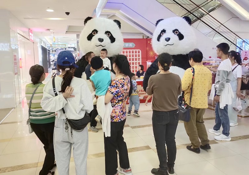為抓住銷售有利時機,假日前期各品牌積極籌備貨源,保證貨品充足。聯(lián)合場內(nèi)外業(yè)態(tài)多維資源,統(tǒng)籌聯(lián)動。國慶期間開展郵儲信用卡、儲蓄卡刷卡滿減活動,力度較大。結合現(xiàn)場促銷,讓消費者享受到雙重優(yōu)惠,有效激發(fā)了消費者的購物熱情。同時開展購物送爆米花、滿額抽紅包、AR紅包雨、“池州印記”集章、大熊貓人偶巡游等活動,極大地活躍了場內(nèi)節(jié)慶氛圍。