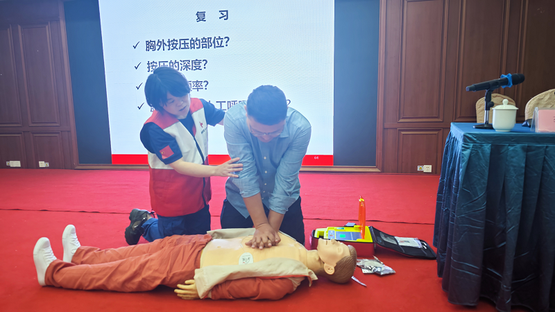 培訓(xùn)班邀請了市紅十字會的專業(yè)老師進行授課,以理論授課與現(xiàn)場實操相結(jié)合,重點培訓(xùn)了救護新概念、心肺復(fù)蘇+aed、氣道異物梗阻等現(xiàn)場救護技能。培訓(xùn)課上老師還向?qū)W員詳細講解了如何應(yīng)對和處理一些日常生活中的突發(fā)情況,如何在有效的搶救時間內(nèi)進行應(yīng)急救護,以及在救助過程中需要注意的問題等。