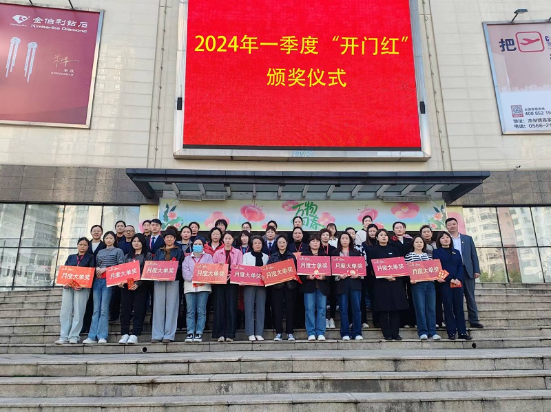 制定“開門紅”激勵方案,設立專柜超額獎、運營管理員超額獎、月度大單獎、團購獎、金點子獎、化解空鋪獎及抖音創(chuàng)作激勵獎7個獎項,激發(fā)全員錨定目標沖刺業(yè)績。一季度“開門紅”競賽中54人次獲獎,多名員工同時囊括多個獎項。