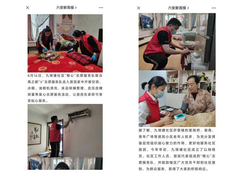 此次活動(dòng)是六安商廈“V服務(wù)”黨建品牌中睦鄰計(jì)劃的落地實(shí)施,六安商廈黨支部聯(lián)合九墩塘社區(qū)黨總支走入社區(qū)居民家中開展空調(diào)、冰箱、油煙機(jī)清洗、床品除螨整理、血壓血糖測量等愛心志愿服務(wù)活動(dòng),讓居民在家即可享受貼心服務(wù)。