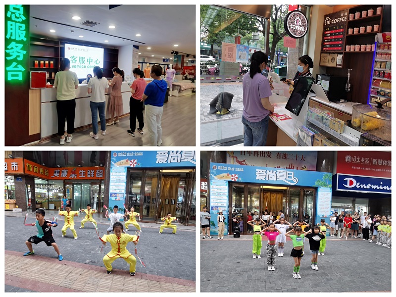 為提升活動整體效果,促進(jìn)各業(yè)態(tài)聯(lián)動,通過與商廈內(nèi)各個業(yè)態(tài)聯(lián)系溝通,形成組合效應(yīng)。每天晚間17點至營業(yè)結(jié)束購物滿128元贈送一樓鄰幾便利店消費券,每周抽取二名幸運顧客獎青皮樹酒店消費券,新入會員加贈美廉果超市水果券,每周末與三樓“武藝傳奇”,四樓“鈦街舞”開展路演活動,活動期間帶動了較高的人氣,銷售達(dá)到了預(yù)期。
