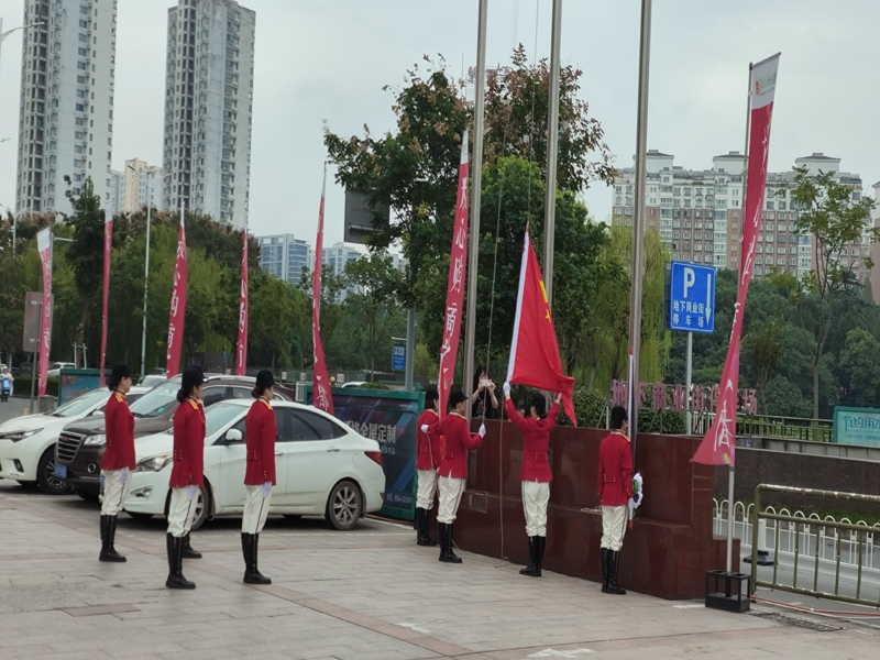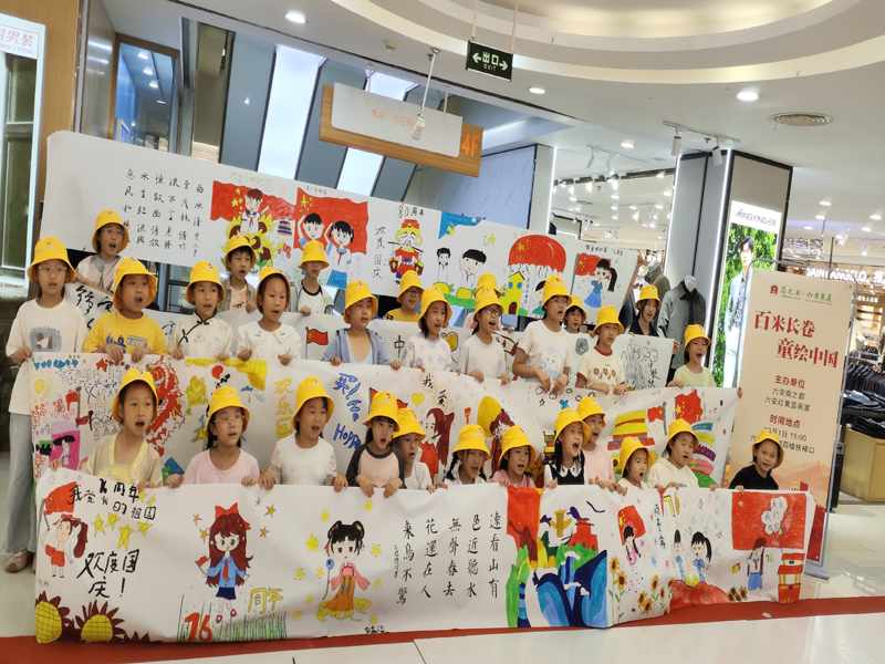 10月1日兩場(chǎng)活動(dòng)吸引眾多市民參與,清晨,不少市民攜老帶幼匯聚商場(chǎng)廣場(chǎng),共同見證升旗儀式,雄壯國歌聲中,五星紅旗緩緩升起,大家手持國旗肅立行注目禮,齊唱國歌,現(xiàn)場(chǎng)莊重而熱烈。當(dāng)日下午,商廈聯(lián)合紅黃藍(lán)書畫苑組織30名孩子開展“百米長(zhǎng)卷 童繪中國”活動(dòng),孩子們以畫筆勾勒祖國壯麗山河,書法對(duì)祖國的熱愛與祝福。